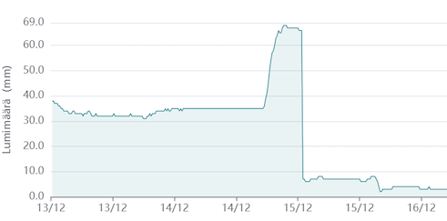 ..paitsi ettei vielä ole, mutta sitten kun on, tiedetään kuinka korkeita nietokset ovat. Asensimme digitaalisia lumensyvyysmittareita neljään kohteeseen Kokkolan suurteollisuusalueelle. Kaksi kohteista mittaa juurikin koko talven aikana kertyviä nietoksia (kokonaiskertymä) ja kaksi ovat kohteissa, joita aurataan. Aurauskohteiden lumikertymästä lähtee viesti kohteen omistajalle, kun aurauskaluston on syytä lähteä liikkeelle. Näissä kohteissa lumen pinta laskee, kun auraus on suoritettu ja nousee taas lumisateen aikana kunnes on taas aika aurata.