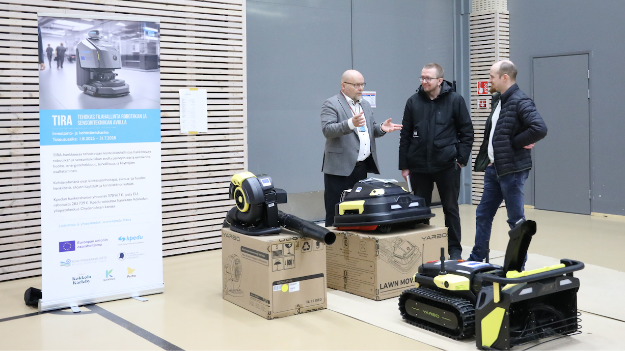 Kpedun hallinnoiman TIRA – Tehokas tilahallinta robotiikan ja sensoritekniikan avulla -hankkeen tilaisuus kokosi Kampushallille puhtaus- ja kiinteistöpalvelualan toimijoita tutustumaan robotiikan ja älykkäiden ratkaisujen mahdollisuuksiin.
